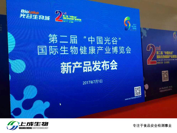 上成生物作為入駐武漢生物研究技術(shù)院的企業(yè),受邀一同參加此次健康產(chǎn)業(yè)博覽會(huì)。在新品發(fā)布環(huán)節(jié),上成生物發(fā)布新品“CP4 EPSPS ”檢測(cè)卡,本產(chǎn)品針對(duì)抗草甘膦轉(zhuǎn)基因大豆的外源基因Cp4-epsps建立了雙抗夾心法的快檢測(cè)產(chǎn)品。其檢測(cè)靈敏度為0.1%,本方法簡(jiǎn)便快捷,靈敏度高,特異性強(qiáng),得到了市場(chǎng)的一致認(rèn)可。
