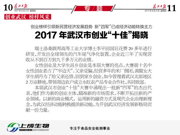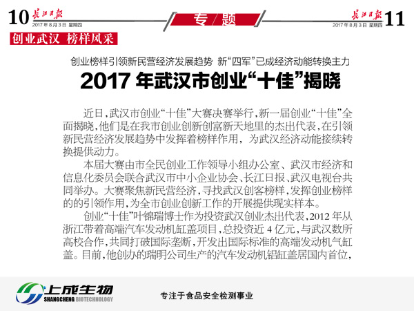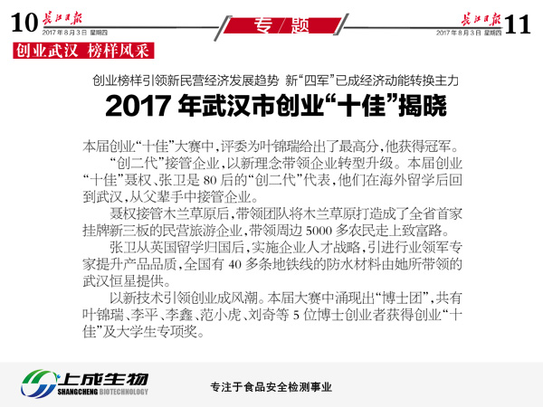 長江日報:2017年武漢市創(chuàng)業(yè)“十佳”揭曉