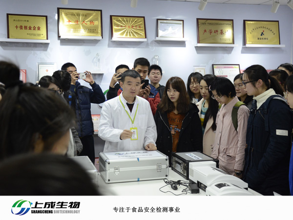 同學(xué)們首先來到光谷生物城內(nèi)的科技成果交易展示廳。學(xué)習(xí)了解生物城的整體發(fā)展規(guī)劃。第二站來到來到武漢生物技術(shù)研究院的公共服務(wù)平臺(tái),參觀學(xué)習(xí)最新的技術(shù)前沿。第三站同學(xué)們來到了上成生物的研發(fā)基地。由技術(shù)負(fù)責(zé)人為大家用簡(jiǎn)單易懂的語言講解食品安全的一些基礎(chǔ)知識(shí)。告訴同學(xué)們平時(shí)飲食的一些健康小常識(shí)。