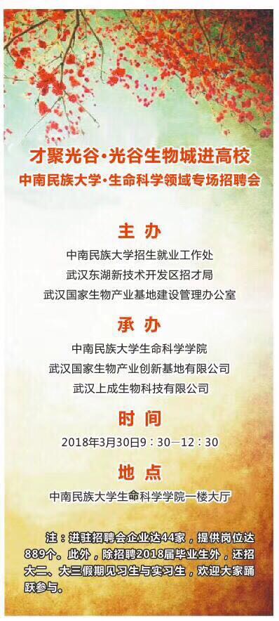 “才聚光谷?光谷生物城進(jìn)高校”中南民族大學(xué)專場招聘會