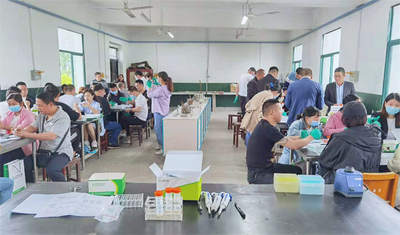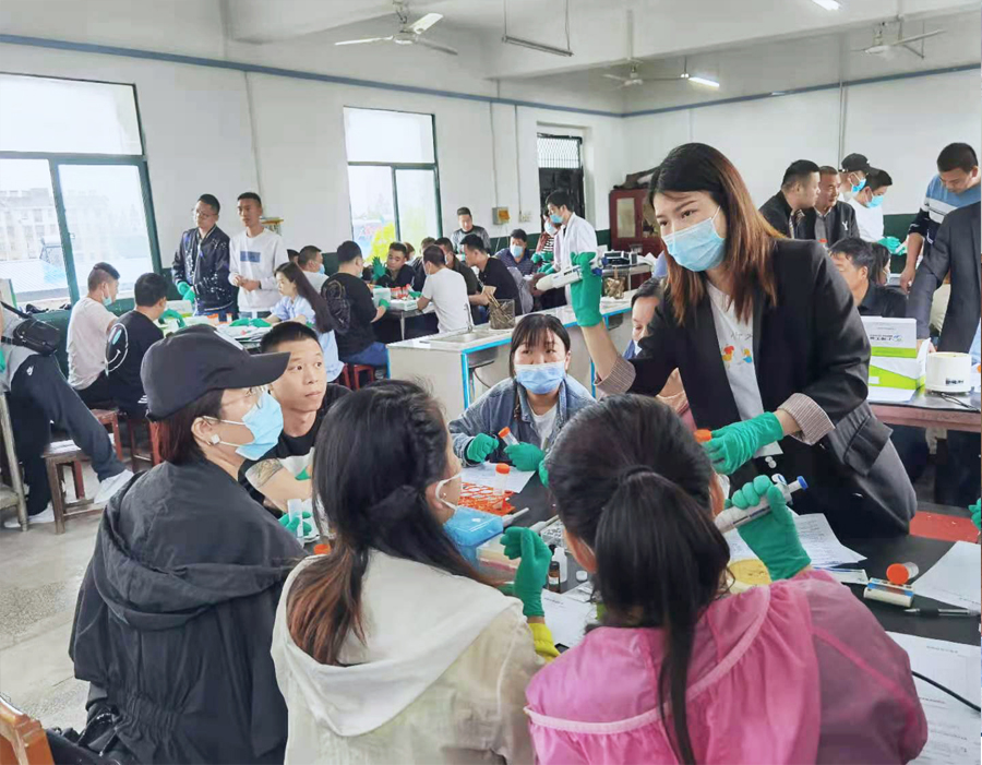 雖然外面下著暴雨,實(shí)操培訓(xùn)現(xiàn)場(chǎng)的氛圍仍然很熱烈。在農(nóng)產(chǎn)品快速檢測(cè)實(shí)驗(yàn)中,有許多值得注意的地方。比如,用樣本液滴膠體金檢測(cè)卡的時(shí)候,有學(xué)員多滴幾滴,樣本液把我們標(biāo)記的金顆粒沖沒了,導(dǎo)致結(jié)果不顯線。也有移液槍在使用的時(shí)候,吸取的速度太快,使槍頭里面吸入的是空氣。我們現(xiàn)場(chǎng)及時(shí)規(guī)范學(xué)員的操作,盡量規(guī)避因操作不當(dāng)導(dǎo)致的錯(cuò)誤結(jié)果。