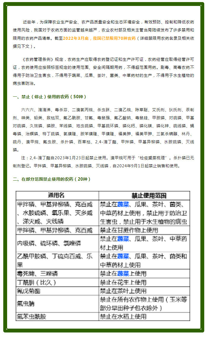 干貨丨2022最新70種禁限用農(nóng)藥清單